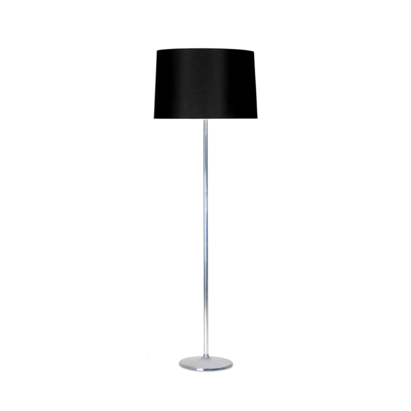 CompararLámpara de pie con base de aluminio acabado espejo y pantalla de tela color negro.