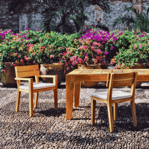 De fácil mantenimiento ya que la tela Sunbrella se lava con facilidad y no se decolora.