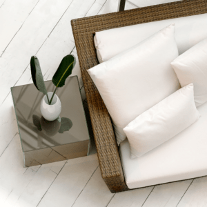 Mantenimiento: Limpie al acero con un trapo semi húmedo y seque de inmediato con un trapo seco para evitar manchas. Al estar expuesta la madera a los rayos del sol y la humedad es normal que tome una coloración grisácea o aparezcan pequeñas grietas en la superficie, el mantenimiento ayuda a prevenir las coloraciones no deseadas y proteger tus muebles.