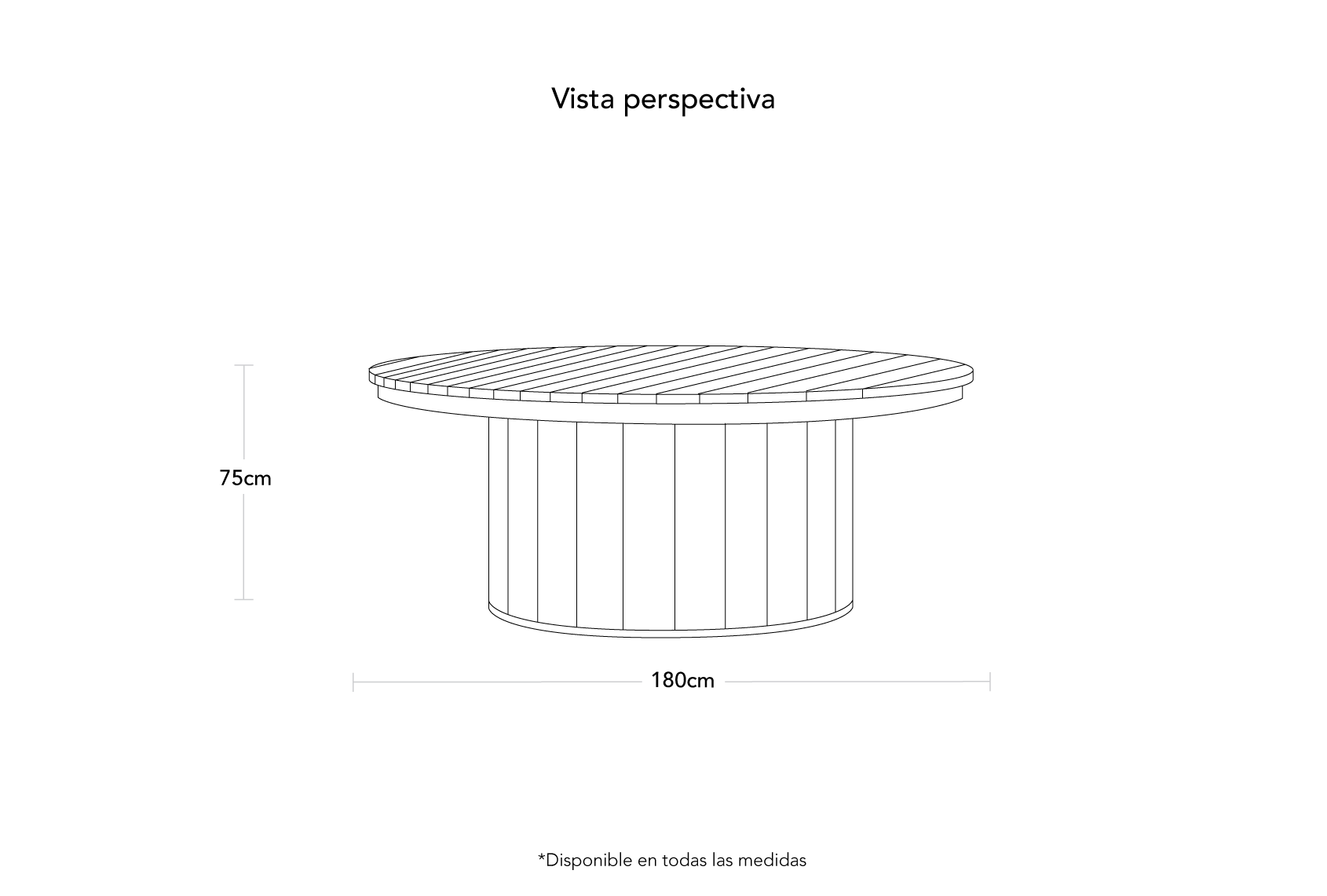 Por su tamaño esta mesa es ideal para la terraza. Está diseñada para los espacios de hoy. Fabricada en madera ideal para exterior y base tejida en Tropilene que resiste los rayos del sol y la humedad. Esta mesa esta disponible en varias medidas.