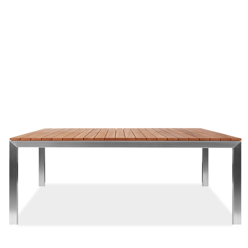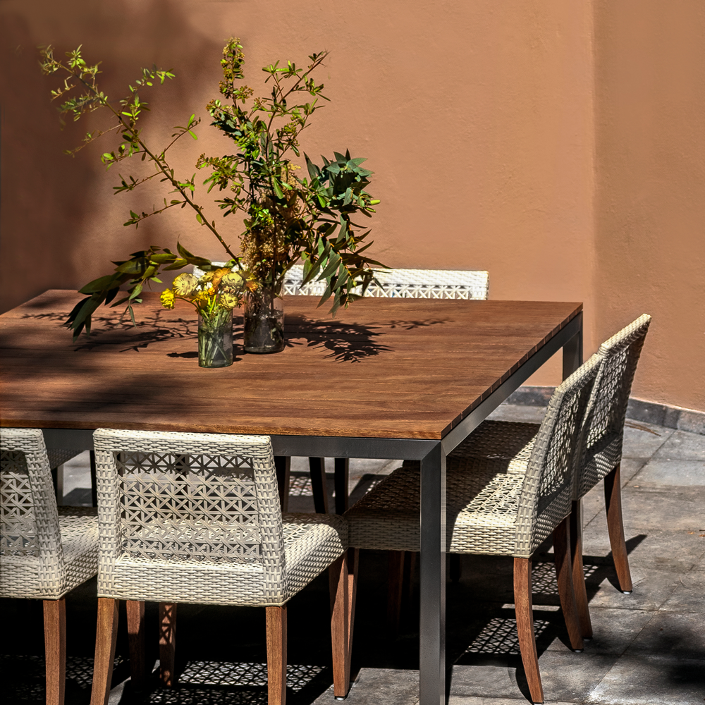 Inspirada en la sencillez y la sofisticación de los materiales, la mesa Treviso está fabricada en acero inoxidable y una cubierta de madera Bojomah que es ideal para exterior. Hemos diseñado la mesa Treviso en varias medidas y alturas para escojas la que mejor se ajuste a tus espacios.