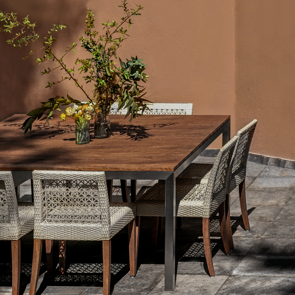 ¡Un clásico! Hemos re-editado el tejido de nuestra clásica silla Tropicana en una nueva versión. Diseñada en madera sólida y tejido resistente a los rayos del sol, es ideal para el exterior ya que mantiene su color.