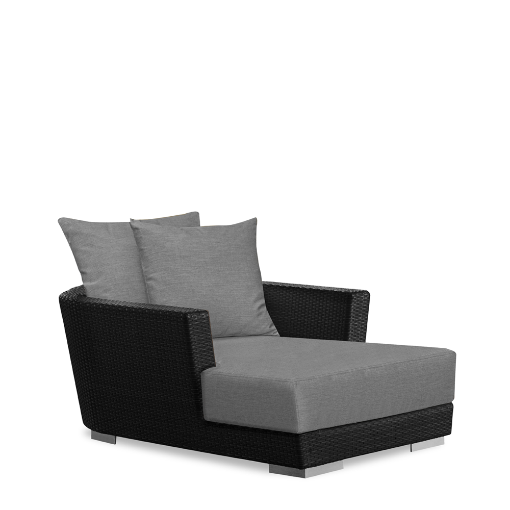 Hemos usado tela sunbrella que resiste los rayos del sol sin decolorarse y es muy fácil de lavar, además la fibra tejida de este chaise longue resiste a la intemperie conservando su color y forma original.