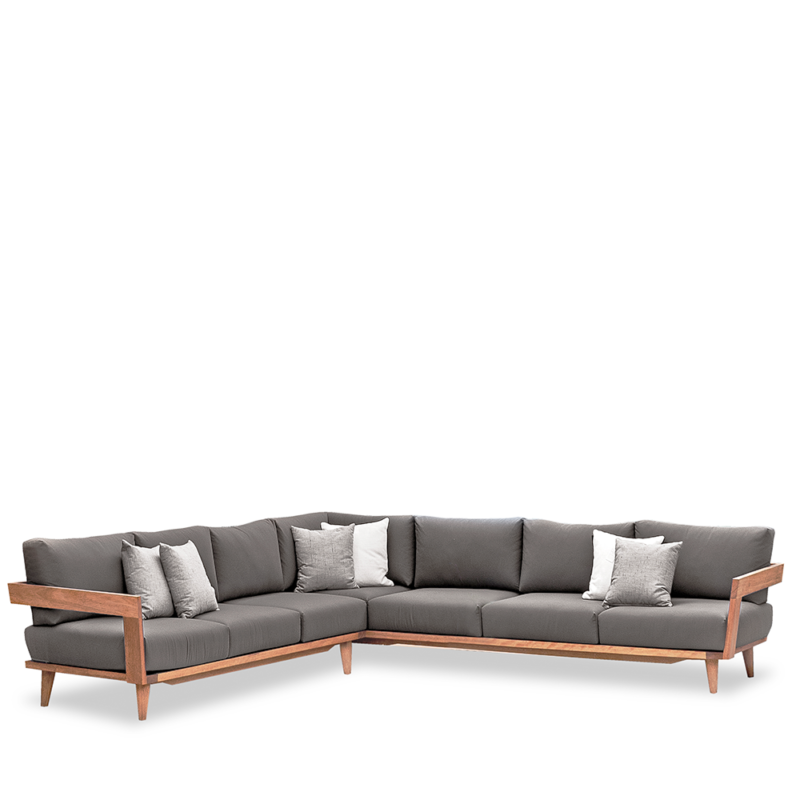 Hemos diseñado esta escuadra con tela Sunbrella por lo que su mantenimiento es de lo más fácil. Además sus acojinamientos para exterior están especialmente diseñados para no conservar la humedad.