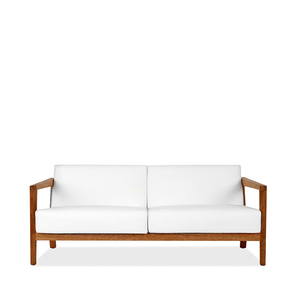 Nos encanta el sofá Dom. Por sus líneas sencillas y sus cortes facetados le dará un toque contemporáneo a cualquier espacio. Es ideal para exterior ya que resiste la humedad y los rayos UV. La tela Sunbrella no pierde su color aún bajo el sol intenso y es de fácil mantenimiento.