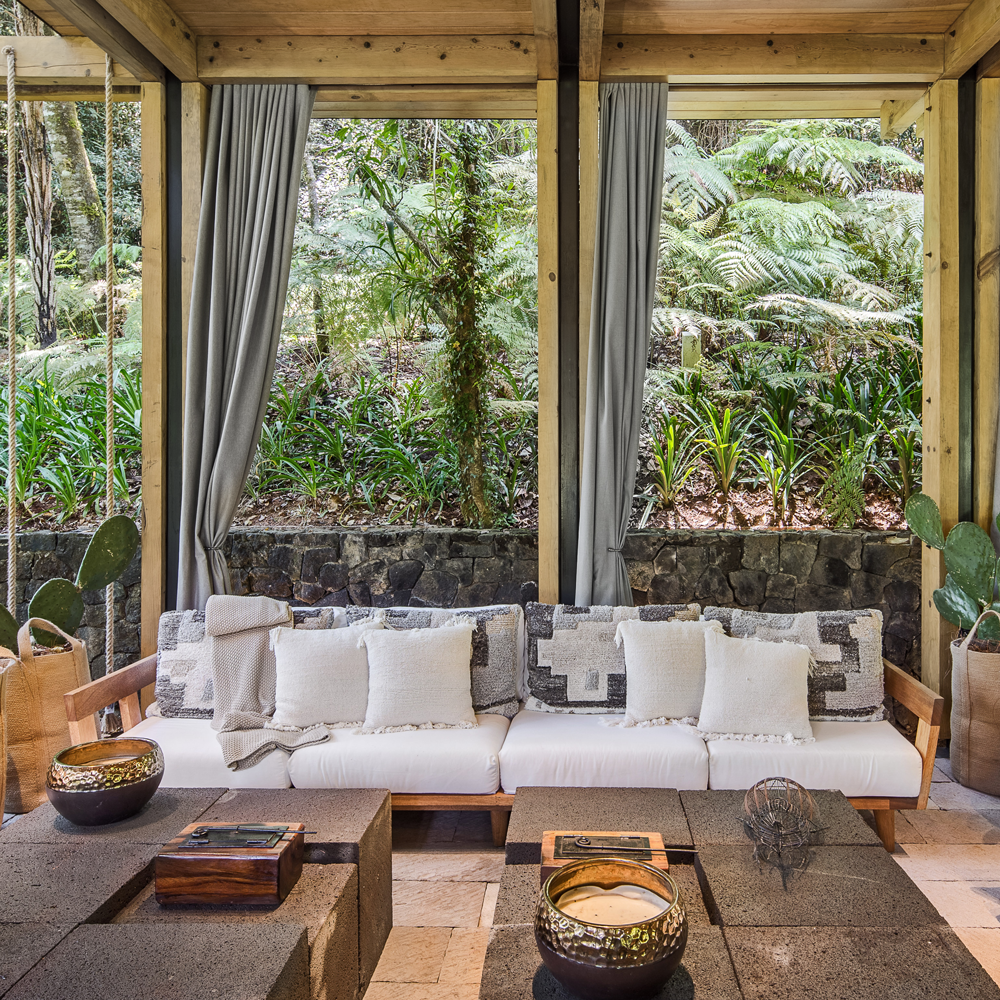 El sofá Kana es ideal para la terraza. Sus acojinamientos para exterior con tela Sunbrella lo hacen ideal para el exterior. Además su mantenimiento es de lo más fácil.