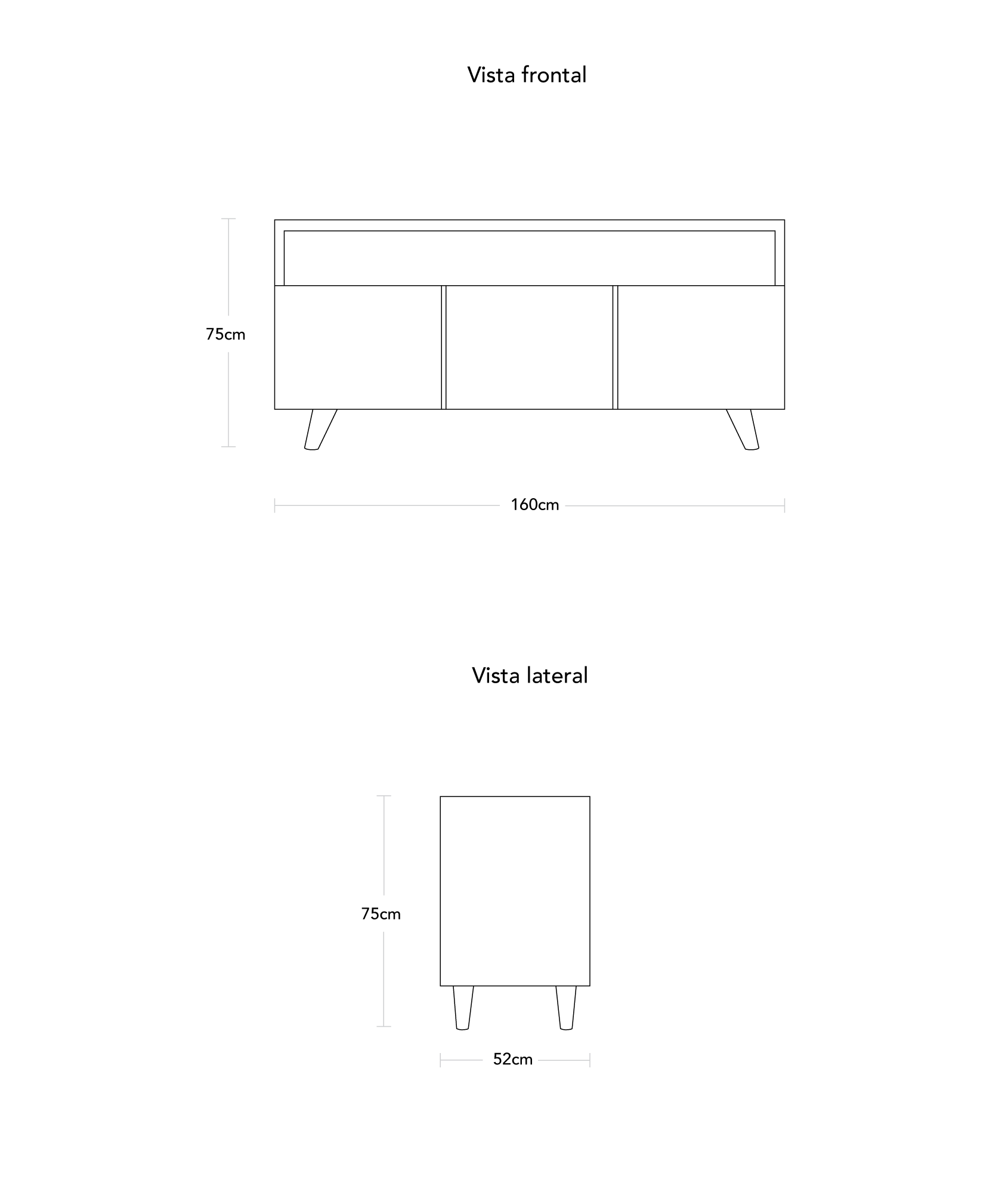 Medidas: Frente 160cm x 52cm de fondo x 75cm de altura.