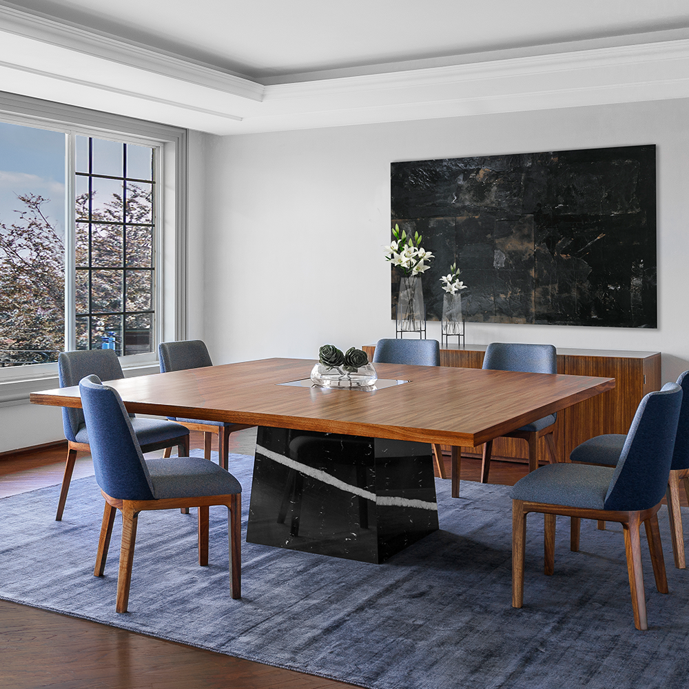 De nuestra nueva colección, la mesa Magg es ideal para espacios de gran amplitud. Su base de mármol book-matched la hacen una pieza única en tus espacios, la cubierta está diseñada en madera. Disponible en los diferentes acabados de la colección Moda in Casa.