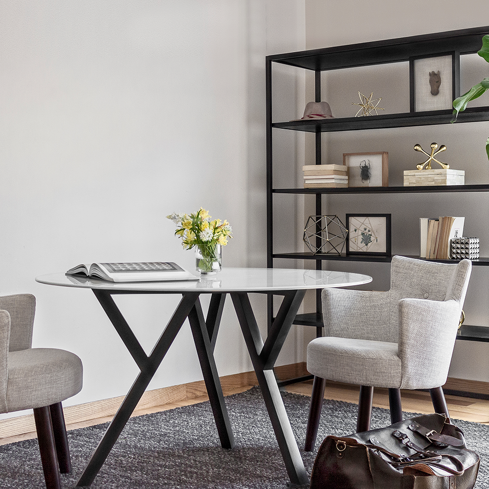 Diseñada en madera sólida, la mesa Yooi brinda un toque moderno y fresco a tus espacios. Es perfecta como mesa de comedor o de trabajo, incluso en la habitación. Su base de diseño geométrico la hace una pieza única. Tenemos una gran variedad de colores para la cubierta de tu mesa y que elijas el que más te guste.