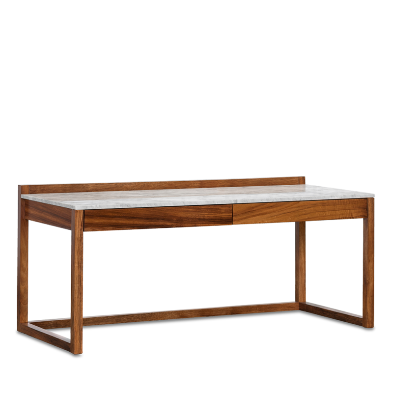 Fabricado en madera de Coru sólida, el escritorio Tafel se caracteriza por sus lineas rectas. Su cubierta de mármol lo hace ideal como mesa de trabajo en el estudio o la habitación de los niños. Cuenta con dos cajones con apertura “push to open” que lo hacen muy práctico.