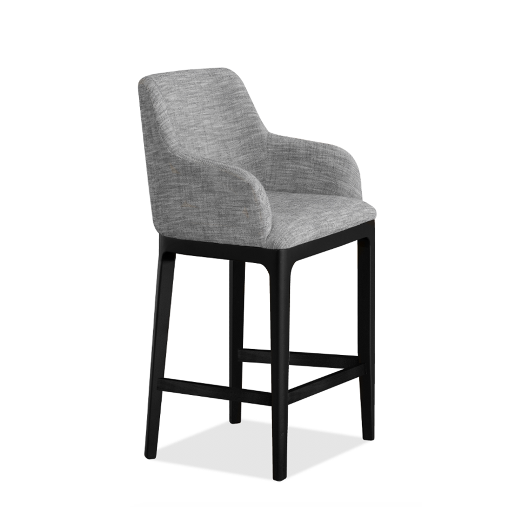 Banco tapizado en tela y base de madera sólida. Es desvestible por lo que darle mantenimiento es de lo más fácil. Cambia de estilo cuando lo desees con tan solo cambiar la funda de tela.