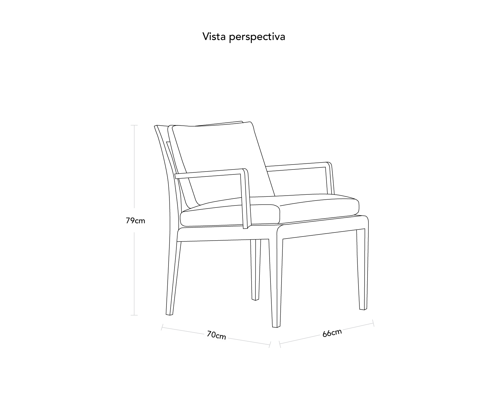 Silla tapizada en tela y base de madera sólida. De estilo clásico es ideal para complementar el living, como silla en el recibidor o para leer un libro en la habitación.